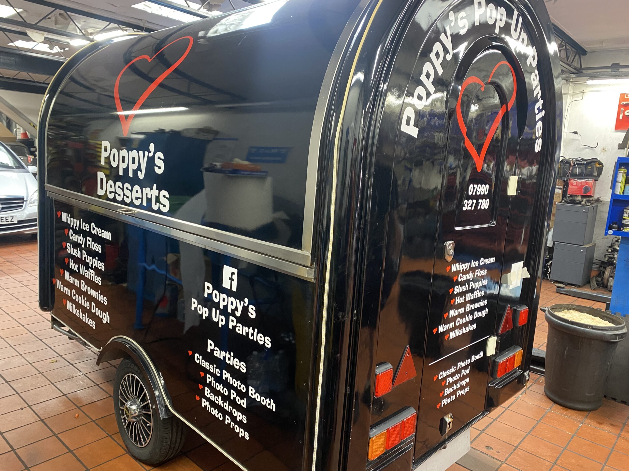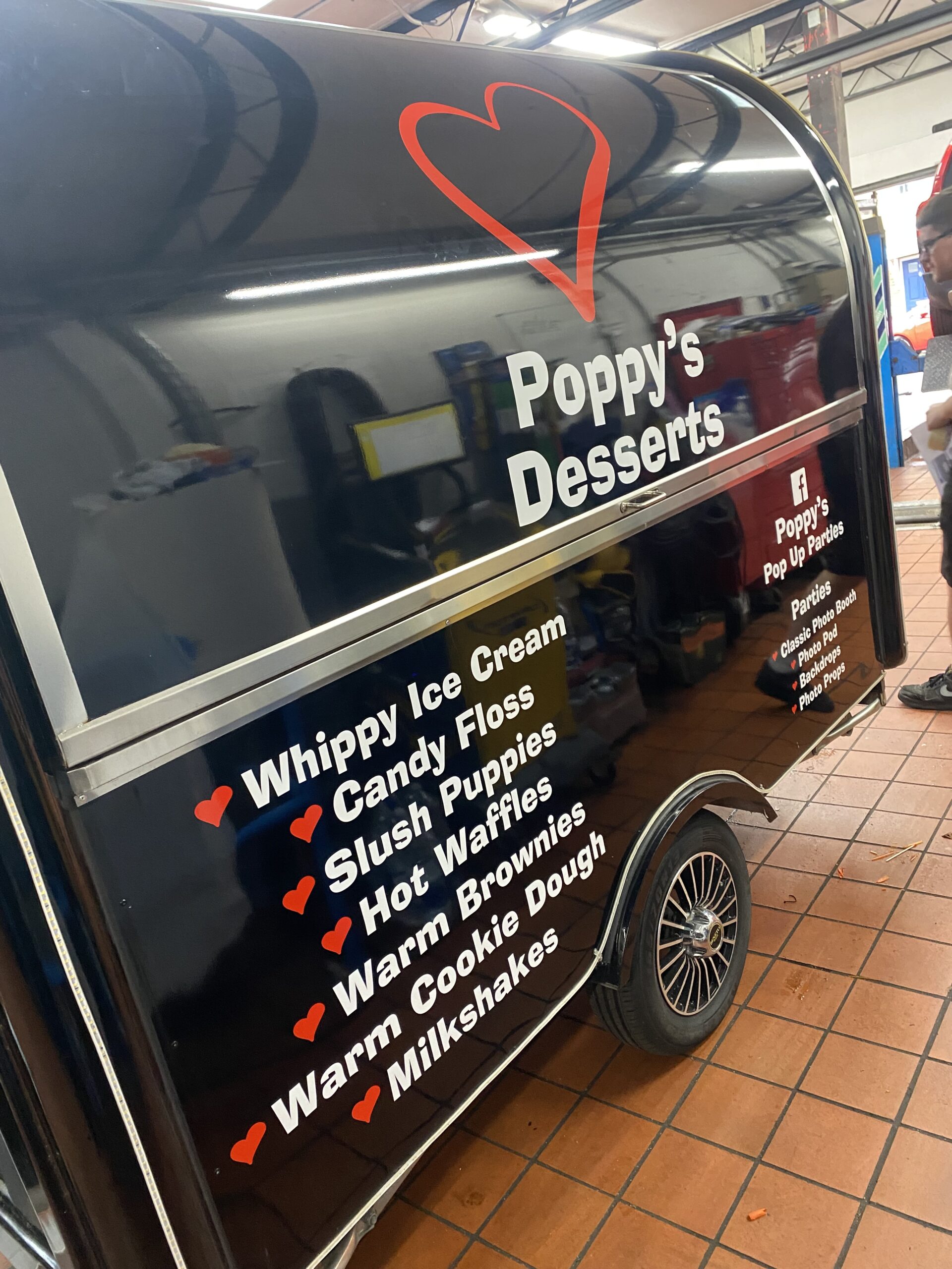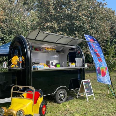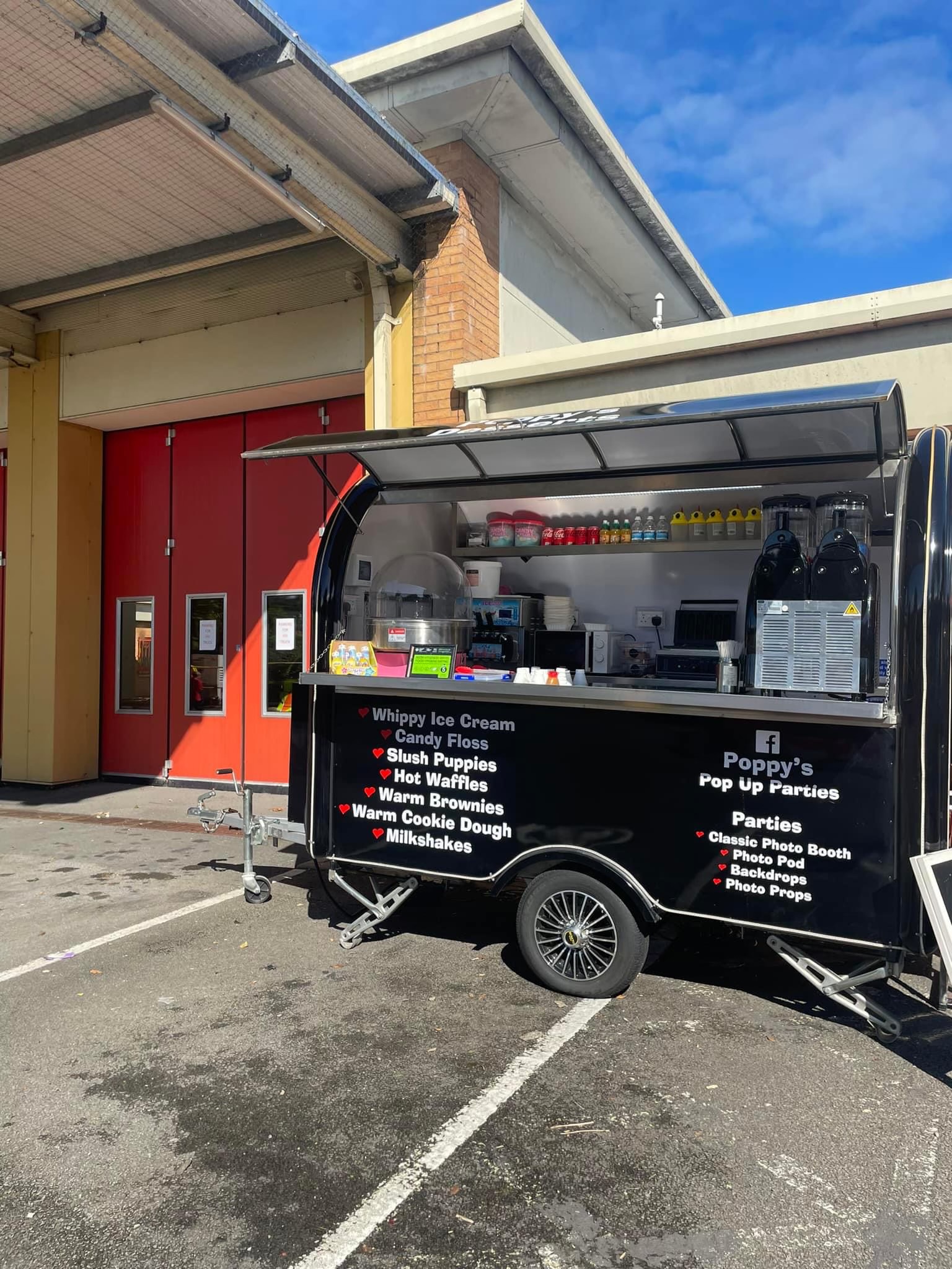 Our dessert trailer is stocked with whippy ice cream, candy floss, slush puppies and hot waffles with toppings.